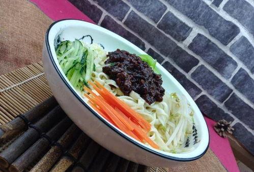 3. 炸酱拌面:将炸酱与煮熟的面条拌匀,加入蒜末、香菜等,清爽可口。